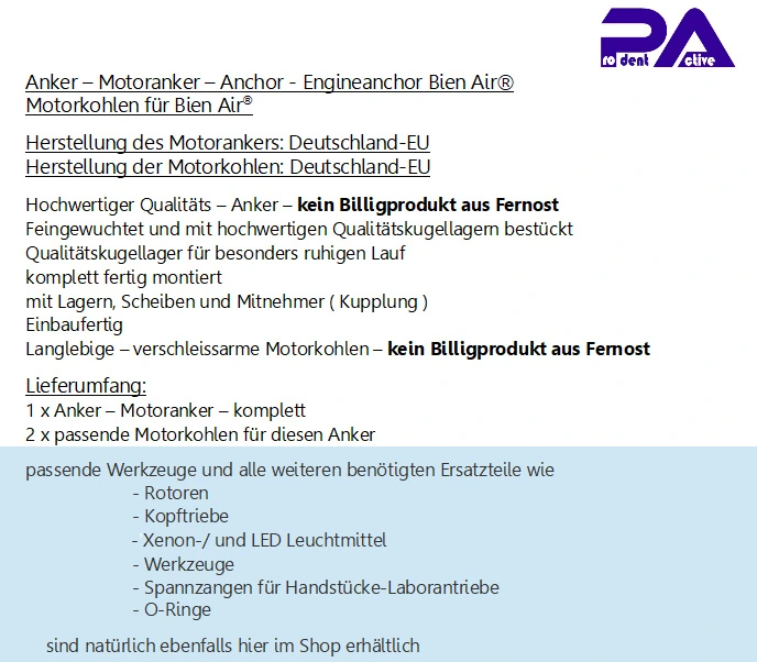 REPARATUR-SET - ANKER inklusive 2 MOTORKOHLEN für Bien Air® MOTOREN