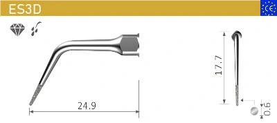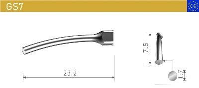 120° angle holder for U files with a shank diameter of 0.57 mm, this tip is usually used for anterior root canal cleaning.